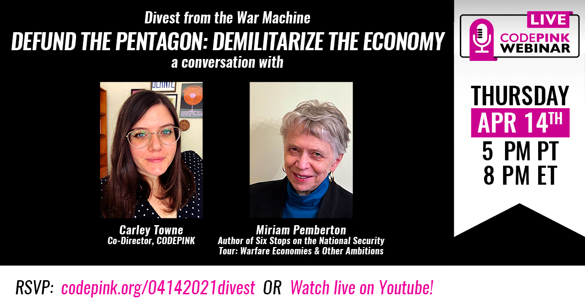 Join us for our next Defund the Pentagon Webinar on April 14 at 5PM PT/8PM ET!