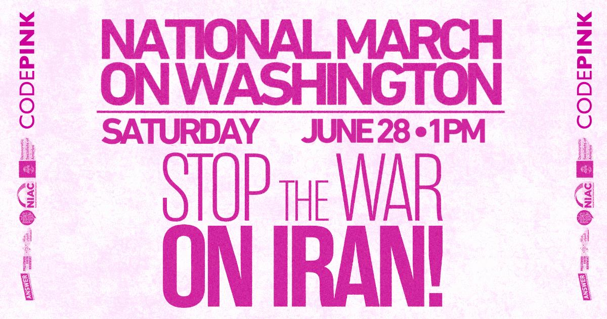 Join people from across the country for a national march on the White House on Saturday, June 28 for a massive protest to demand “Stop the war on Iran!” Trump and Netanyahu have launched an unprovoked and illegal war of aggression against Iran, threatening to engulf the entire Middle East or even the world in devastating conflict. But the people of the United States reject this war!