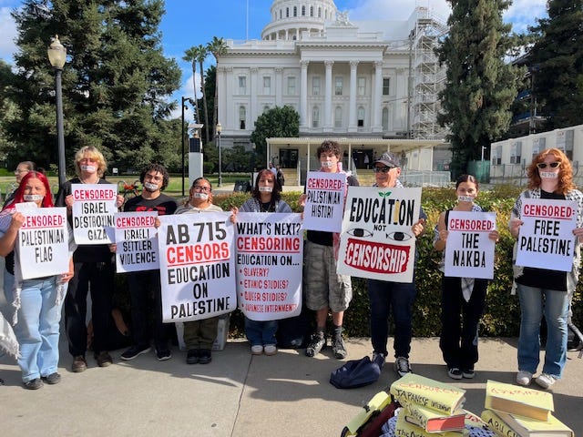 #AB 715 requires school districts remove any book, article, film, resource material that the Antisemitism Prevention Coordinator deems to be factually inaccurate. School districts that fail to take “corrective action” will be fined; their teachers threatened with dismissal.