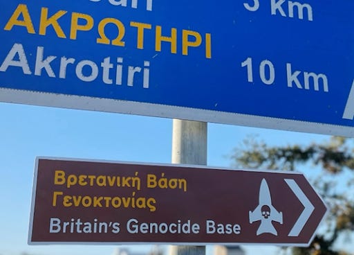 Figure 1 - 'Genocide Free Cyprus' sign at RAF Akrotiri