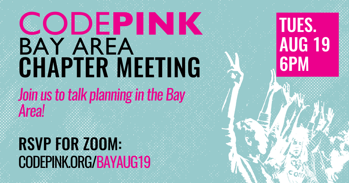 Join us on Tuesday, August 19, at 6pm for our next CODEPINK Bay Area chapter meeting! RSVP for Zoom link.