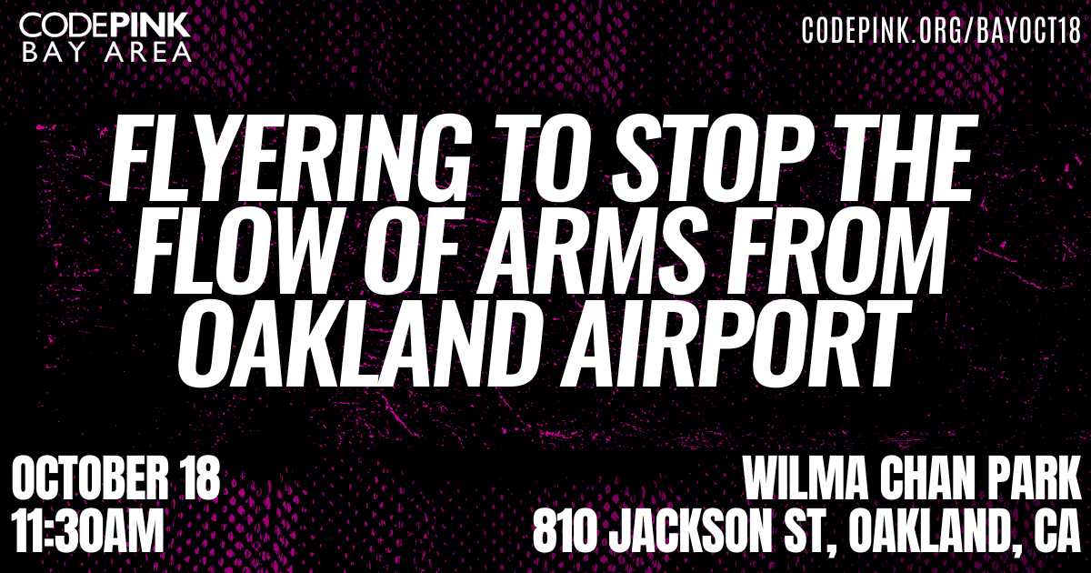 Many don't know that Oakland Airport is being used to ship military cargo to Israel to commit genocide. Join CODEPINK Bay Area as we flyer, spread the word, and build the engagement we need to stop it at the No Kings rally this weekend.