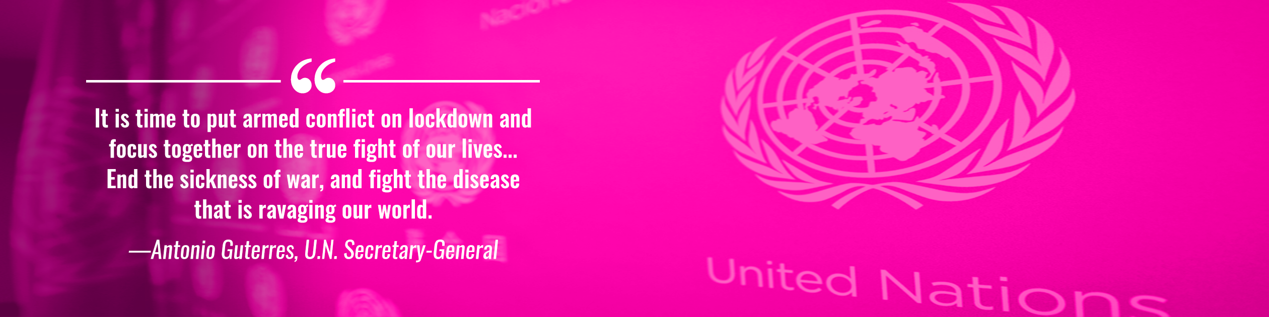 UN Secretary-General Antonio Guterres is pleading for a global ceasefire. "The fury of the virus illustrates the folly of war... It is time to put armed conflict on lockdown and focus together on the true fight of our lives.” Add your name to in support below!