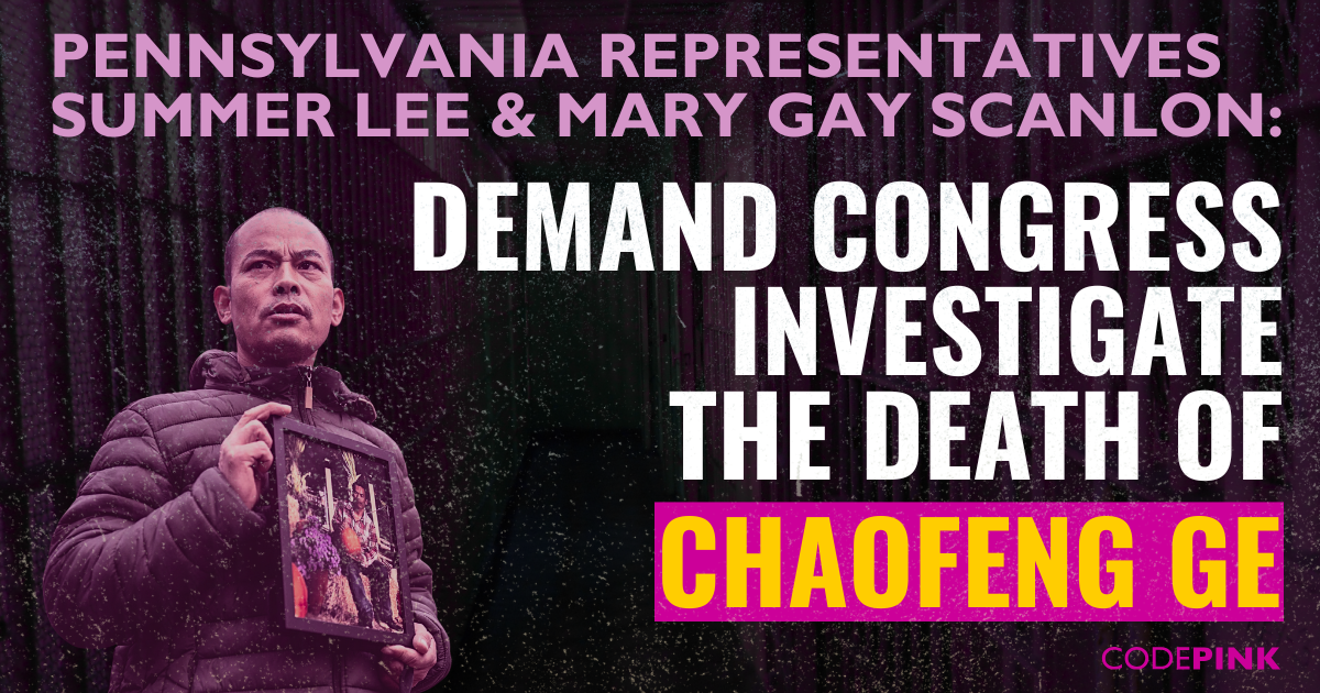 Chinese national Chaofeng Ge died in ICE custody under inhumane conditions, and no investigation has been launched into his death. Sign the petition requesting Pennsylvanian Representatives Summer Lee and Mary Gay Scanlon to call on Congress to investigate Ge's suspicious death.
