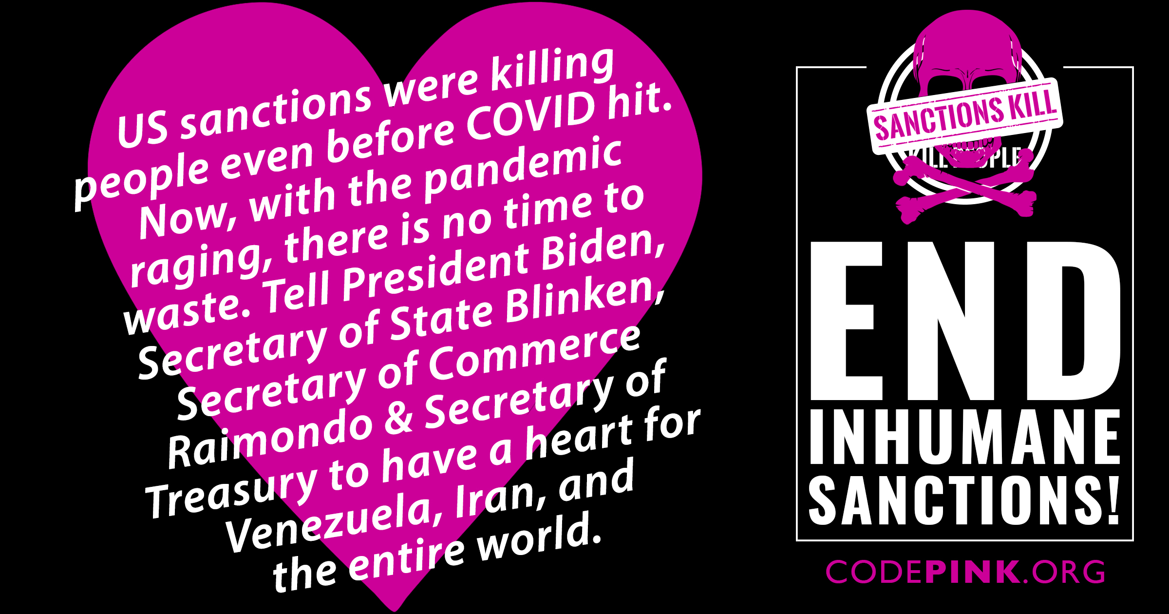 We strongly urge your administration to immediately implement broad sanctions relief. Sanctions kill and they kill indiscriminately.