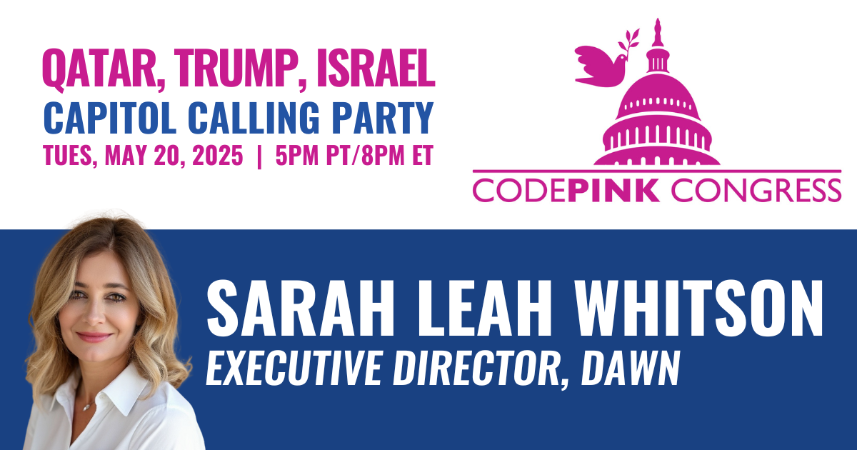 Join us on CODEPINK Congress to unpack Trump’s Middle East trip, along with his side deals for the release of a US hostage in Gaza and the restart of the Iran nuclear deal.