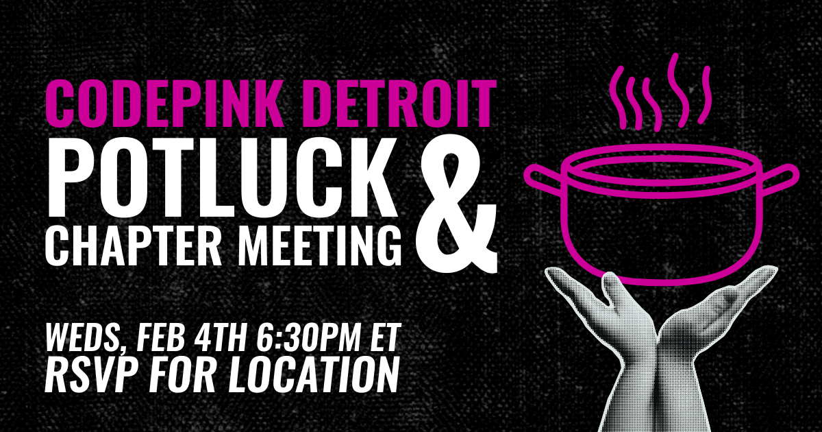 Join CODEPINK Detroit on Wednesday, February 4th at 6:30pm for our first in-person chapter meeting!