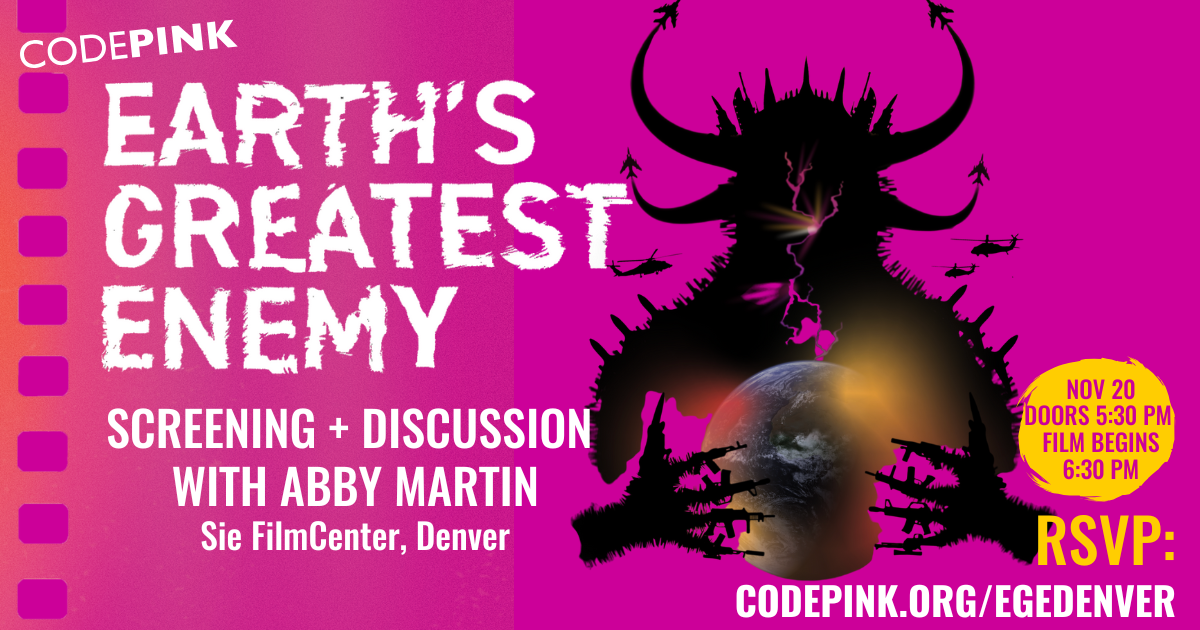 Join CODEPINK in Ithaca for a special screening of Earth's Greatest Enemy, featuring a Q&A with Abby Martin following the film.