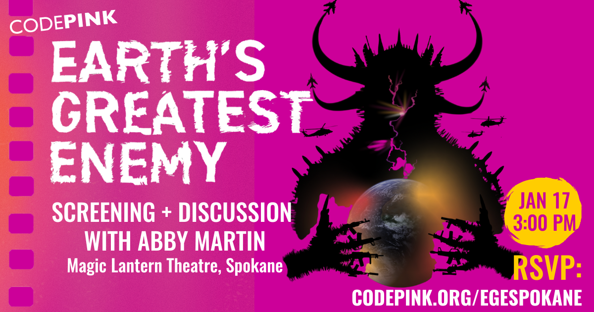Join CODEPINK in Spokane for a special screening of Earth's Greatest Enemy, featuring a Q&A with Abby Martin following the film.