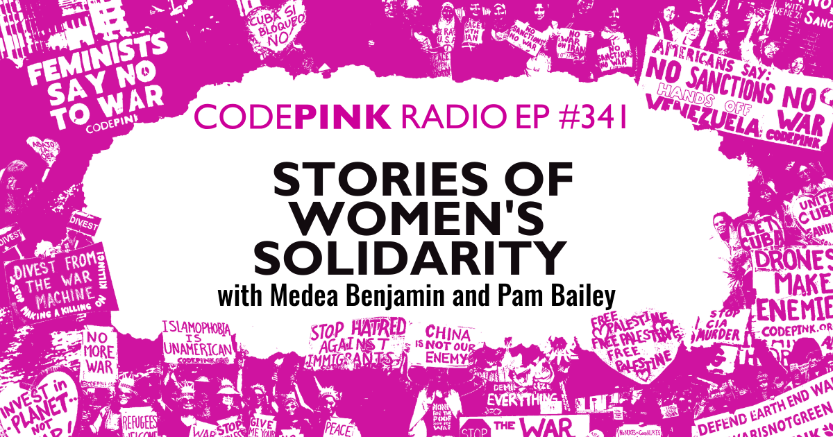 Episode 341: Stories of Women's Solidarity with Medea Benjamin and Pam Bailey: Join CODEPINK Co-Director Danaka Katovich for a discussion about International Women's Day! Medea Benjamin joins the show to discuss her recent delegation to Venezuela. Pam Bailey from We Are Not Numbers joins us to recount the 2009 CODEPINK International Women's Day Delegation to Gaza.