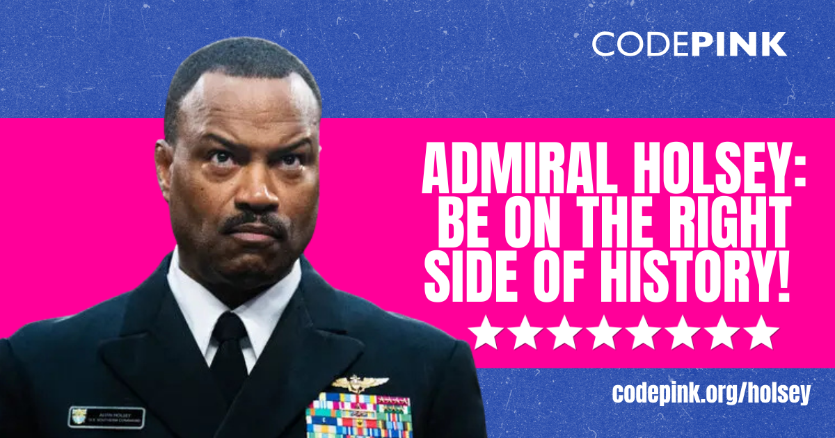 Now that Admiral Holsey has stepped down, this is a critical moment. Free from command constraints, he can choose to speak honestly about what he saw and refuse to remain silent as another war is set in motion. Sign this petition urging Admiral Holsey to use his conscience, tell the truth, and help prevent another devastating war in our hemisphere.