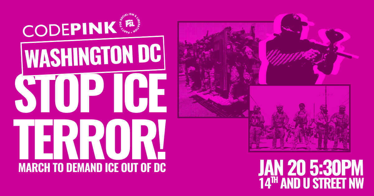 Join CODEPINK, PSL and more to say ICE OUT OF DC! ICE OUT OF EVERYWHERE!
