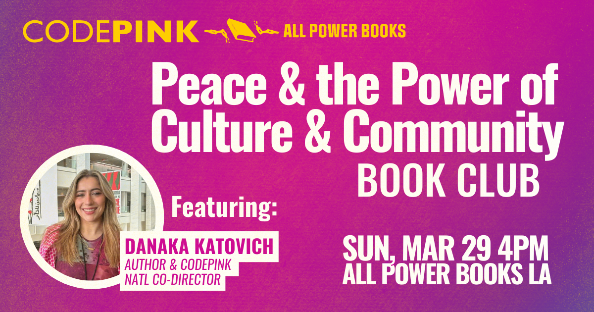 Join CODEPINK co-director Danaka Katovich, who is also a published author, as she reads from her new book and talks about how CODEPINK is taking on the warmongers this year.
