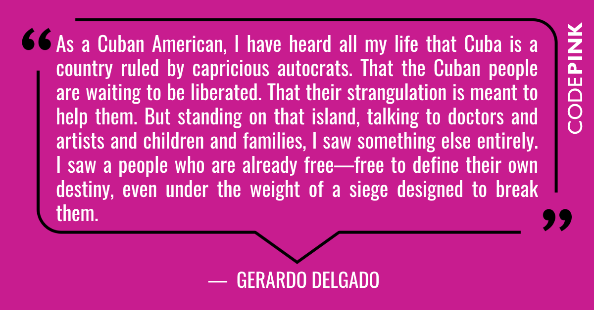 @codepinkalert After delivering over 6,300lbs of aid, our CODEPINK delegation to the Nuestra América Convoy is leaving Cuba today full of conviction to oppose the US blockade. ABAJO EL BLOQUEO!