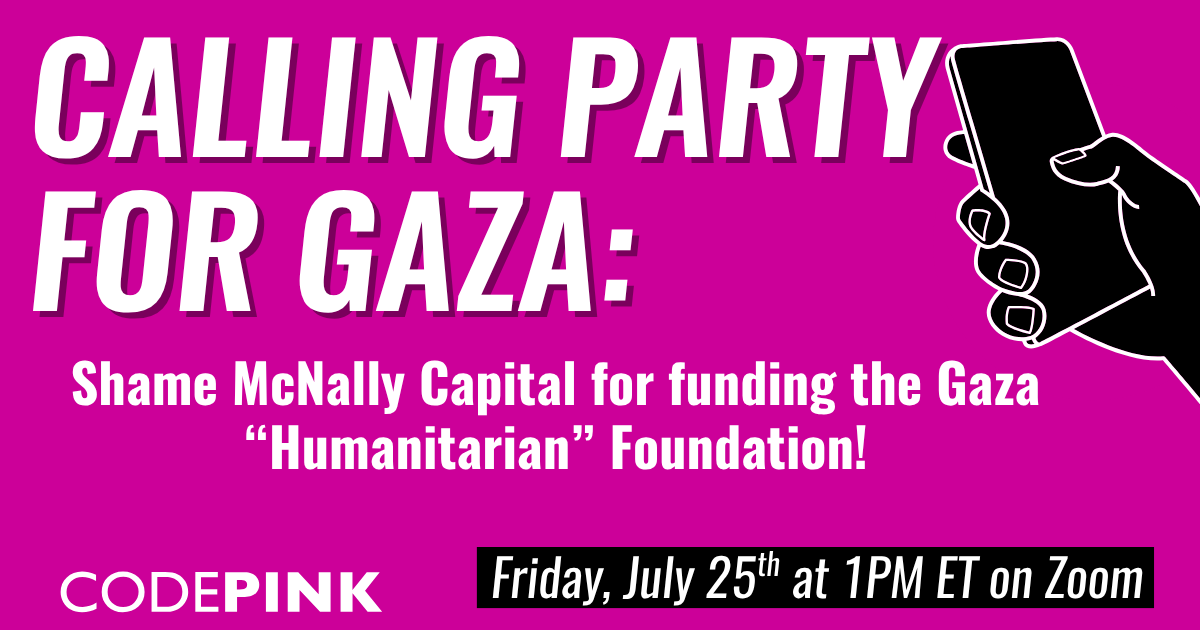 Join us for 30 minutes of nonstop calling to McNally Capital on Friday, July 25th, at 1 pm ET to end their investment in genocide!