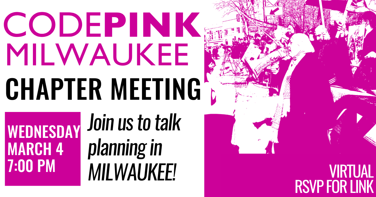 Join CODEPINK Milwaukee's next chapter meeting March 4th at 7pm CT to discuss local issues and community activism!