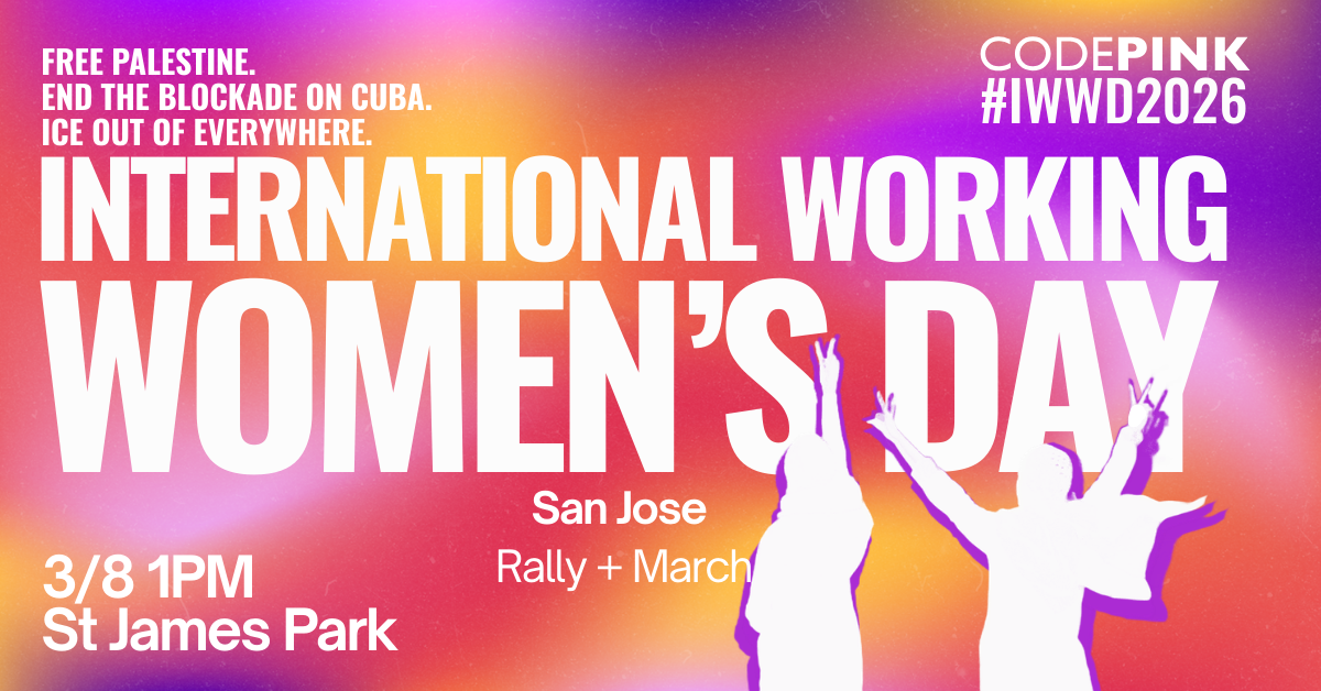 SAN JOSE– CODEPINK San Jose will join a coalition of peace and justice organizations for a rally and march on International Working Women's Day, Sunday, March 8, 2026, from 2 to 4 p.m., at Stevens Creek and Winchester in San Jose. The event, organized by San Jose Peace and Justice Center, aims to oppose the Trump administration's policies affecting immigrant women and their allies.