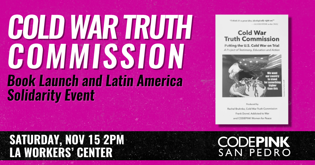 Join CODEPINK San Pedro for a panel discussion featuring testifiers from the Cold War Truth Commission as we put the U.S. Cold War on Trial. There will be time for you to share your own thoughts and testimonies about the crimes of the U.S. during the Cold War. We will end the evening with a Latin America Solidarity event!ย