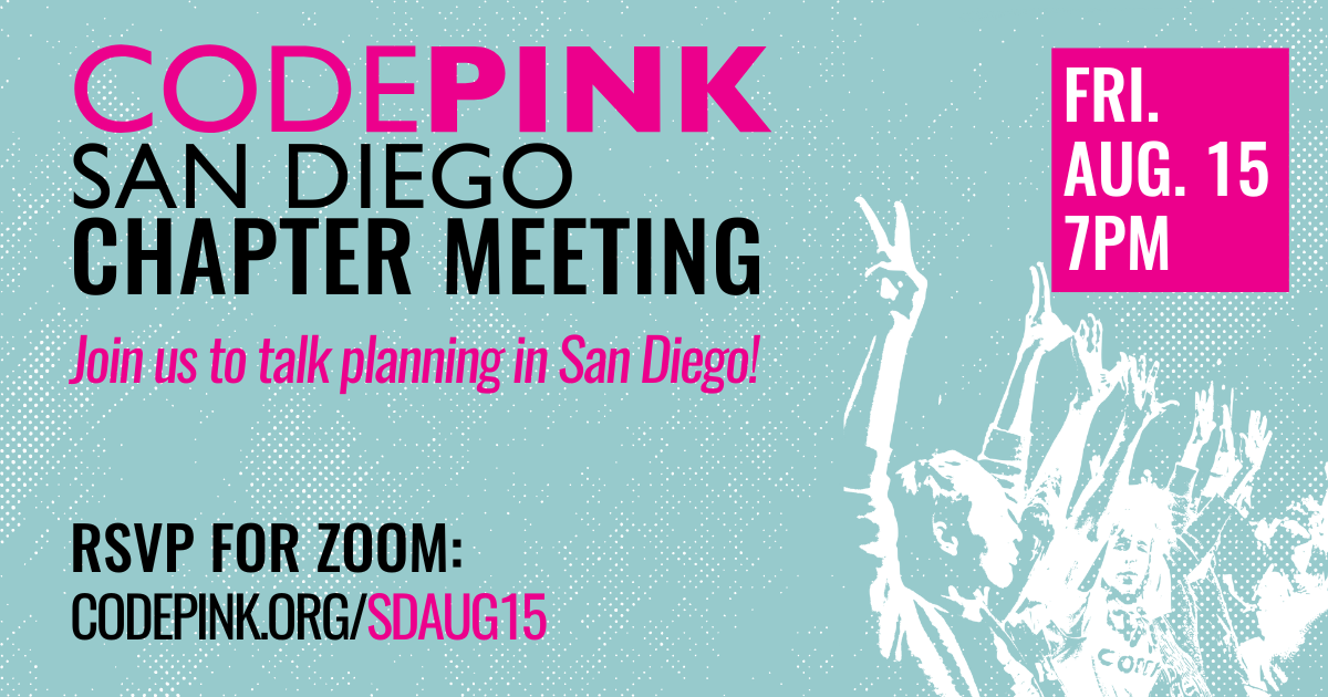 Join us for our next chapter meeting call to talk planning and next steps in disrupting the war machine in San Diego. RSVP for Zoom registration link!