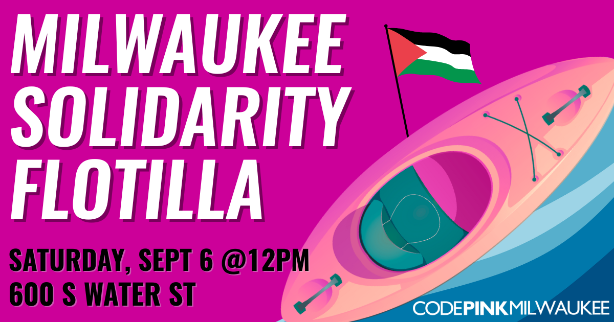 MILWAUKEE, WI – CODEPINK Milwaukee, in coalition with local peace and justice organizations, will hold a symbolic flotilla on the Milwaukee River to demand safe passage for the Global Sumud Flotilla and an end to the siege preventing humanitarian aid from reaching Gaza.