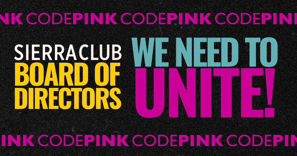Recently, the New York Times published an article about the Sierra Club – an attack framed as an inside scoop. This article was written by one of the same authors who wrote a story a few years ago attacking CODEPINK for our uncompromising stance against war. The New York Times has always been on the side of the war economy throughout its history, and we don’t want to add to its mission. Rather, in times like these, when Empire seeks to divide the movement for the people and the planet, we need to reach out, bring it together, sharpen our collective clarity, and move forward.Â