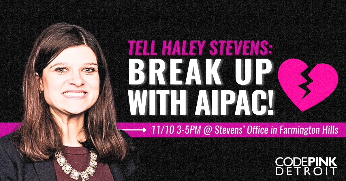 Join CODEPINK Detroit to tell Haley Stevens: BREAK UP WITH AIPAC!