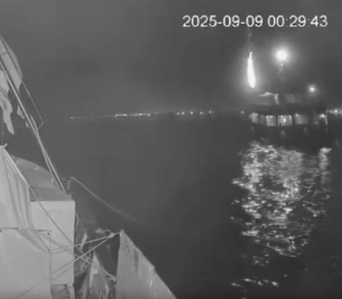 Five months previously, on May 1, 2025, multiple drones dropped explosives on the “Conscience” flotilla ship in international waters off Malta causing such extensive damage to the bow of the ship that it became inoperative. Several crew members were injured by flying debris.