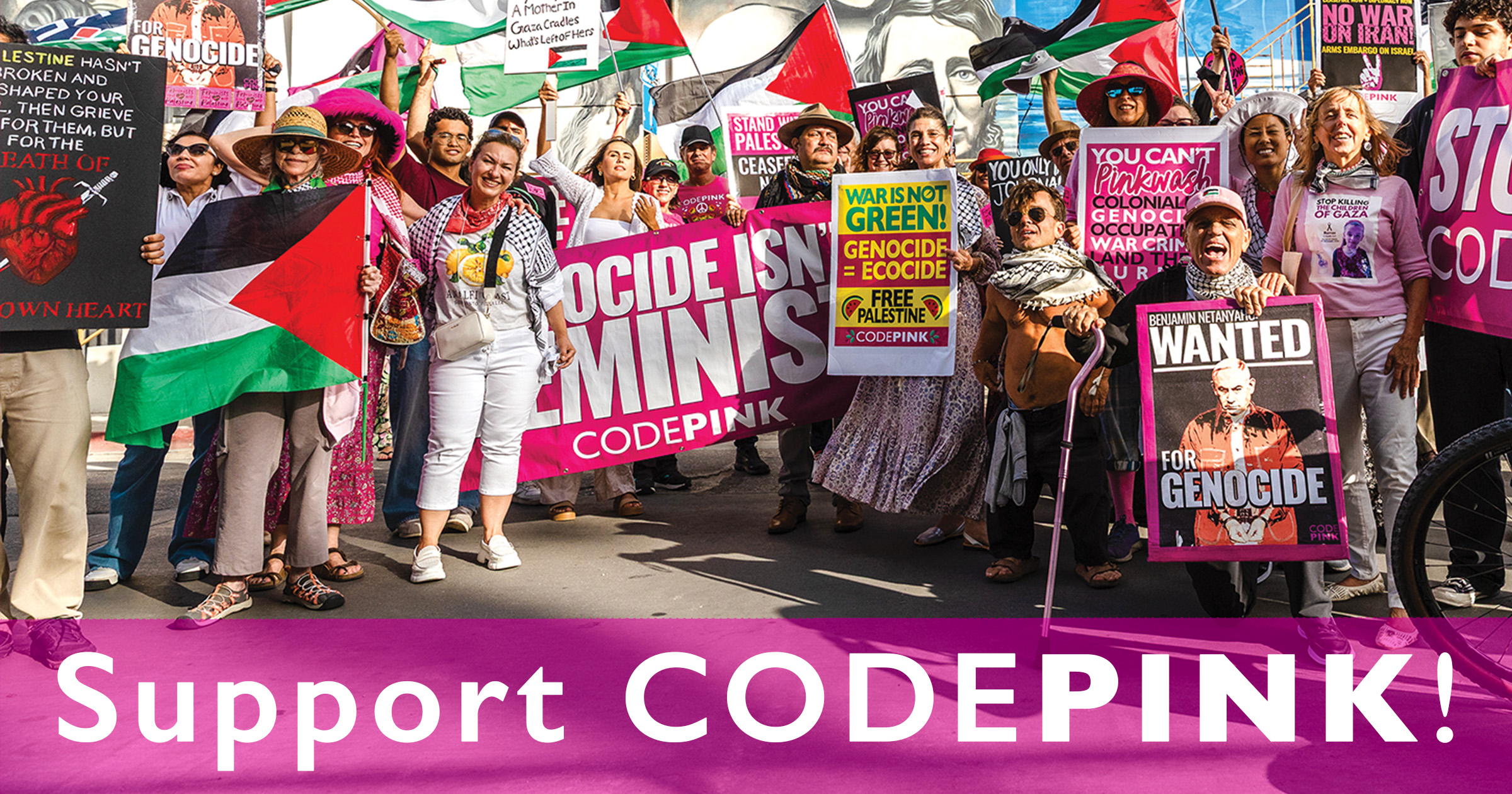 Also, we gladly accept Qualified Charitable Distributions (QCDs) from IRAs. If you are 70½ or older, you can donate directly from your IRA to support Peace—potentially reducing your taxable income. Please direct your retirement plan administrator to remit the distribution to our mailing address: CODEPINK, 578 Washington Blvd. #395, Marina Del Rey, CA 90292.