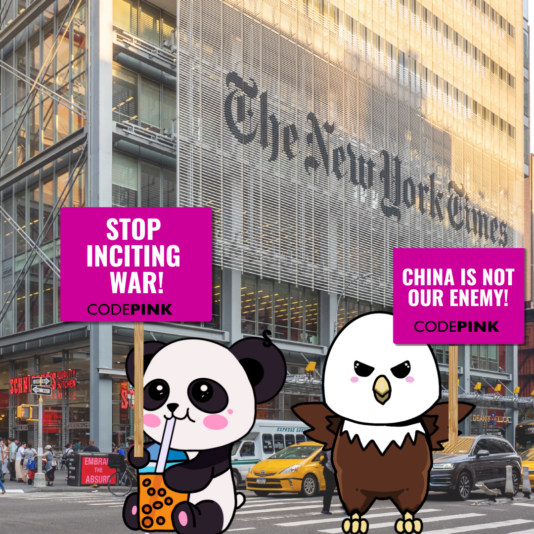 And still, the New York Times ignores these crises and continues to plague our headlines with messages of ever-increasing war budgets and fear-mongering appeals to the hearts and minds of the U.S. public that war with China is both inevitable and imminent. We cannot let this slide!Â